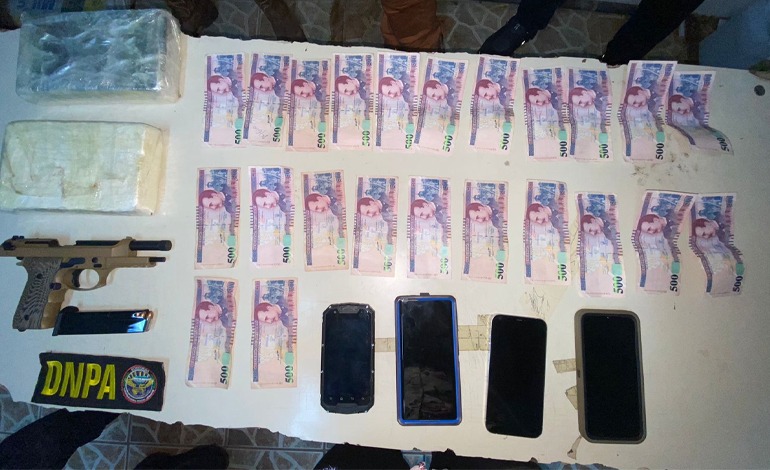 CHOLUTECA. – Equipos especiales de localización y seguimiento pertenecientes a la Dirección Nacional Policial Antidrogas (DNPA), ejecutaron la detención de cuatro ciudadanos en la zona sur del país, por suponerlos responsables del delito de tráfico de drogas y tenencia ilegal de arma de fuego de uso comercial.