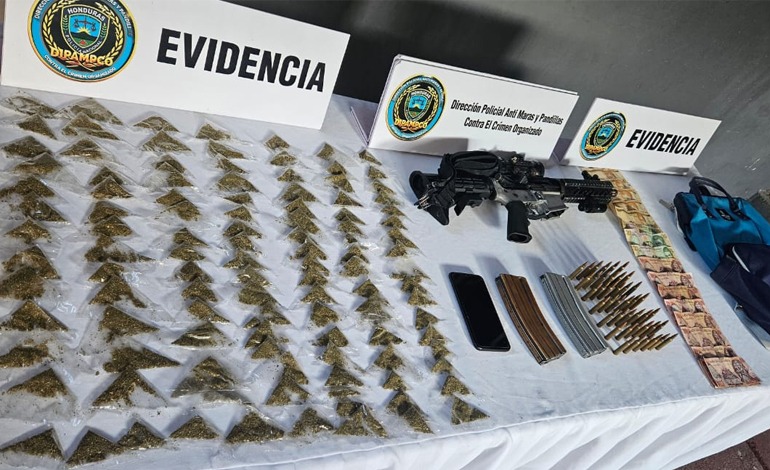 En el segundo operativo mediante una operación de vigilancia y seguimiento en la colonia Kitur del sector La Planeta, La Lima, Cortés, se capturó con un fusil AR-15 a un distribuidor de drogas.