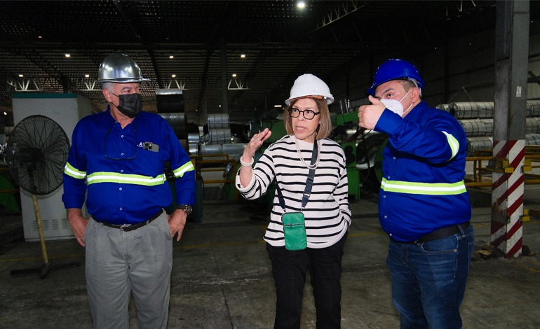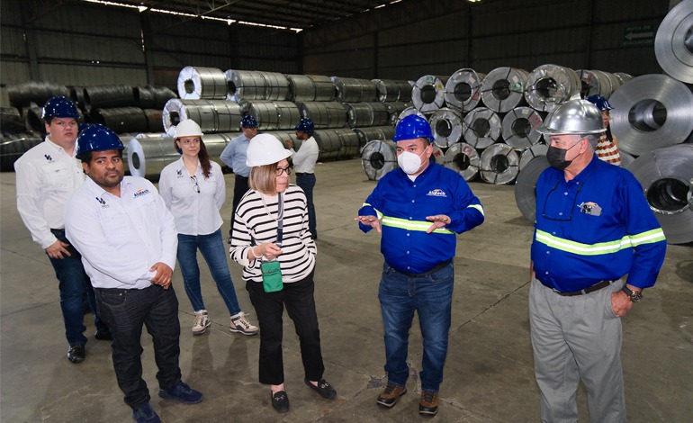 Una comitiva del Banco Central de Honduras (BCH), liderada por su presidenta Rebeca Santos, realizó esta semana un recorrido por las modernas instalaciones de uno de los complejos industriales más importantes de Alutech, empresa líder del acero en Centroamérica.