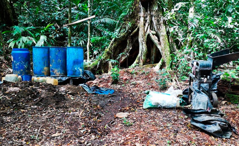 En el área protegida se encontró un centro procesador de droga, en el cual se encontró un motor con su picadora y 10 bidones.