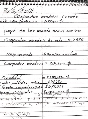 Miguel Reynoso, uno de los detectives de la Dirección de Lucha contra el Narcotráfico, que participó en el operativo relató que las libretas, junto con otros documentos, así como armas, dinero (USD 193.220) y joyas, habían aparecido en uno de los compartimentos ocultos de uno de los tres vehículos interceptados en el operativo policial realizado en una base militar, que pertenecían a López.