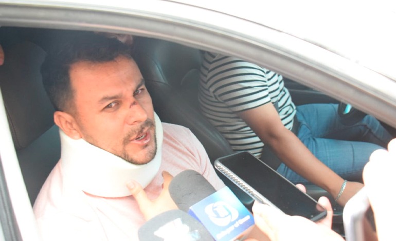 Visiblemente lesionado, el exfutbolista y pastor Rubén Matamoros, llegó a la audiencia de declaración de imputado del hombre que provocó el aparatoso accidente vial donde murió su esposa e hijo de 9 años.