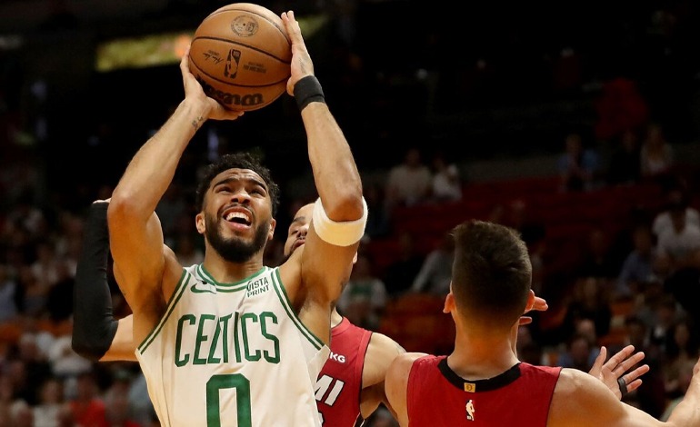 El alero Jayson Tatum firmó el primer triple doble de su carrera en playoffs con 23 puntos, 10 rebotes y 10 asistencias y el base Derrick White llegó a 20 tantos para los locales, que sometieron a Miami a un bombardeo de 22 triples (44,9% de acierto).