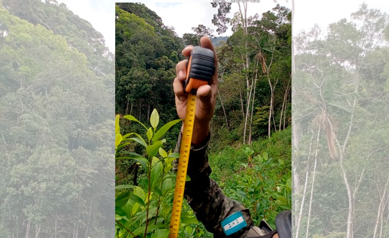 En el marco del Plan Nacional de Seguridad Solución Contra el Crimen, Fuerzas Armadas a través de la Policía Militar del Orden Público, en el cerro la Ceibita, Palestina, Olancho, se logró el aseguramiento de una plantación de supuesta hoja de coca, con un tamaño promedio de 1.70 metros de altura y una extensión de ocho manzanas de tierra, también se localizó una construcción utilizada como “narcolaboratorio” artesanal el cual tenía los siguientes materiales e insumos: