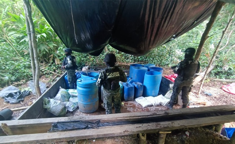Las FF. AA. empleando unidades especiales de investigación de la Dirección de Información Estratégica y unidades operativas de la Policía Militar del Orden Público (PMOP), el 27 de abril de 24, en el Sector de Cerro Azul, de la biosfera del Río Plátano, departamento de Colón, se ubicó y aseguró una plantación con extensión de aproximadamente (35), manzanas de tierra cultivada supuestamente con arbustos de coca con una aproximado de 180,000) plantas.