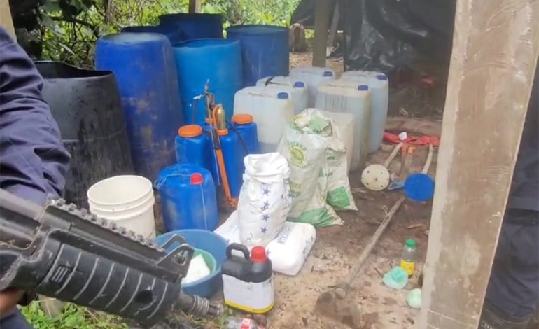 También se aseguró un (01) laboratorio rústico para extraer pasta base de coca; donde se encontraron diferentes insumos químicos y logística para el procesamiento y extracción de la pasta base de coca.
