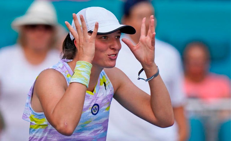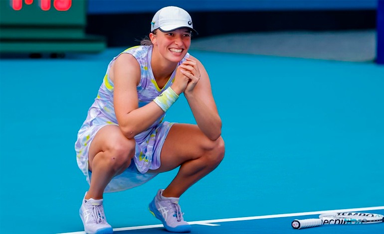 Swiatek, ganadora en Indian Wells y Catar este año, no dio ninguna opción a su rival, número 20 del mundo, que había ganado a la tunecina Ons Jabeur (N.9) en cuartos, y a su compatriota Coco Gauff (N.3) en octavos.