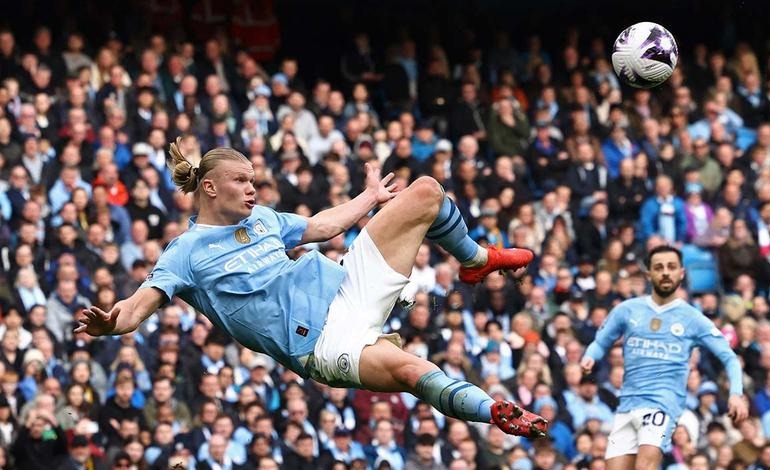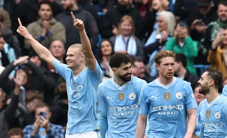 Exhibición de pegada de Erling Haaland: con cuatro tantos, el atacante noruego lideró al Manchester City en la victoria 5-1 sobre el Wolverhampton, este domingo en la 36ª jornada de la Premier League, donde su equipo sigue el ritmo del líder Arsenal.