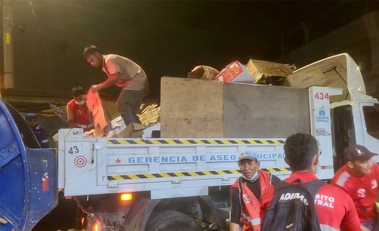 Las arduas labores de limpieza se realizaron bajo el liderazgo de la Alcaldía Municipal del Distrito Central (AMDC), con el apoyo de las Fuerzas Armadas de Honduras y la Secretaría de Gestión de Riesgos y Contingencias Nacionales (Copeco), recolectando más de 68 toneladas de residuos y desperdicios en sectores de Comayagüela.