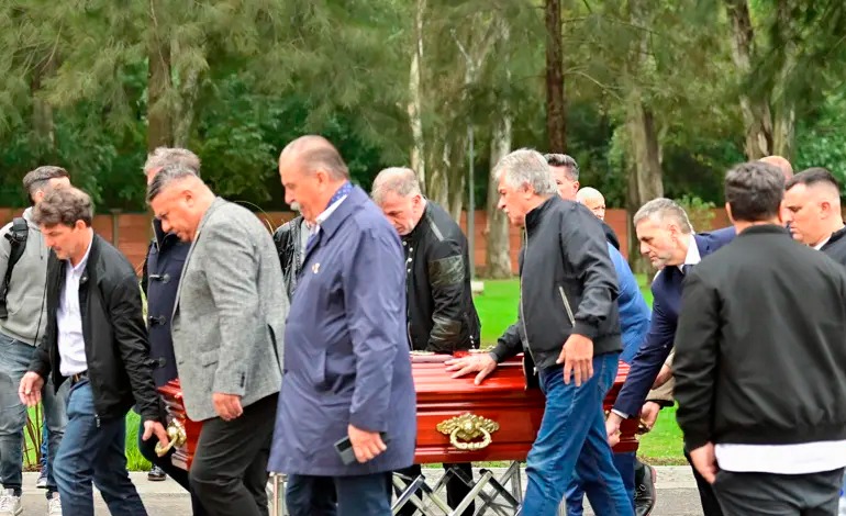 El féretro fue cargado, entre otros, por el presidente de la AFA, Claudio «Chiqui» Tapia, hasta el estadio de Fútbol Sala del complejo habitacional que lleva el nombre de otro campeón del mundo, Lionel Andrés Messi, donde fue velado hasta las 17H00 (20H00).