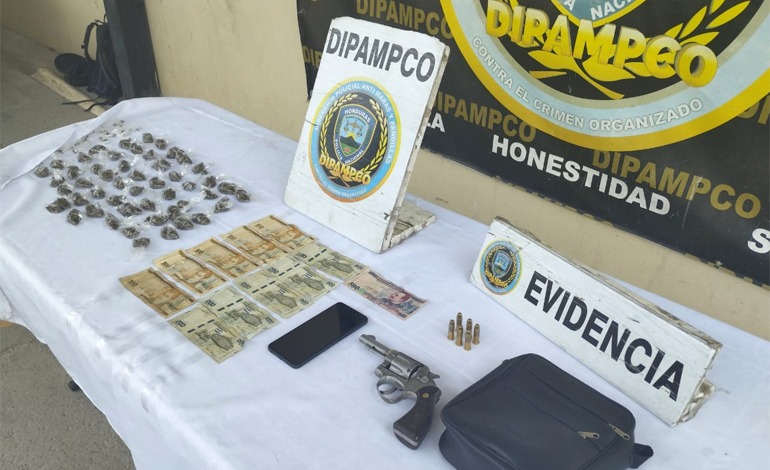 Asimismo, le decomisaron un arma de fuego tipo pistola la cual está siendo investigada por las autoridades para determinar si fue utilizada para cometer algún hecho criminal, además del dinero en efectivo producto de la venta que había realizado.