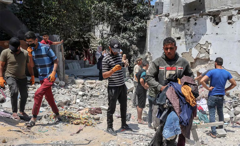 Según testigos, hubo de nuevo obuses este domingo en los alrededores y en el centro de Rafah, donde el ejército israelí lleva a cabo una ofensiva terrestre desde el 7 de mayo.