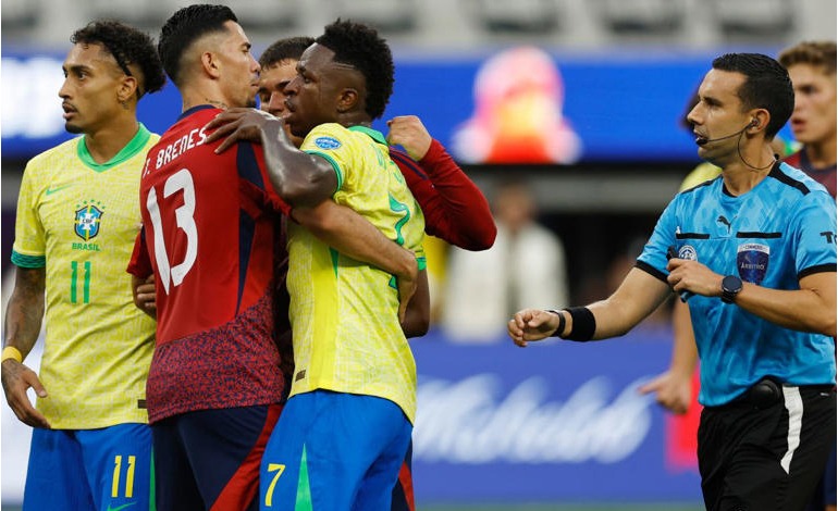 Dos goles, uno de ellos de museo, regates de fantasía, burlas y broncas con sus defensores: la Copa América asistió por fin a una actuación volcánica de Vinicius Jr que iluminó a la necesitada Brasil en la noche de Las Vegas.