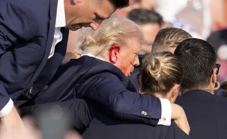 «Me dispararon con una bala que perforó la parte superior de mi oreja derecha», dijo Trump poco después del tiroteo en la localidad de Butler, en Pensilvania (noreste), un estado bisagra fundamental en los comicios presidenciales.