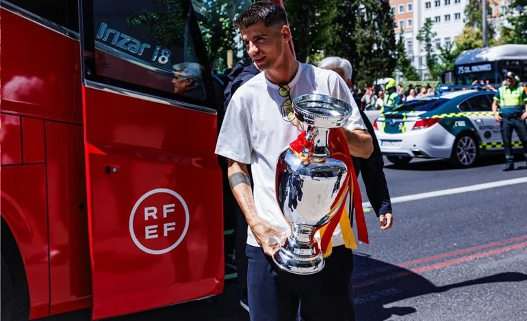 Lamine Yamal fue otro de los grandes aclamados en la Cibeles, lugar habitual de celebración del Real Madrid. «Ha pasado de liarla en la clase» de la escuela «a liarla en la Eurocopa», dijo Morata sobre la juventud -17 años- del jugador del Barça, sensación del torneo de Alemania y elegido mejor jugador joven.