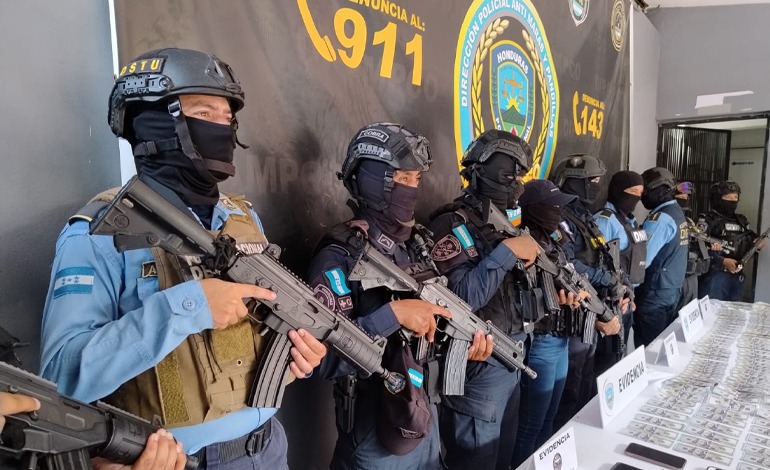 También se decomisaron 31,200 dólares en efectivo, equivalente a 772 mil lempiras con el tipo de cambio actual, además de seis teléfonos celulares, un vehículo Toyota Hilux, color negro, otro similar color blanco y una camioneta Kia Sorrento, color plateado.