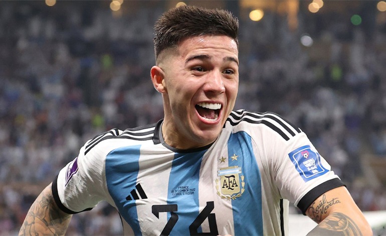 El mediocampista fue elegido por la FIFA como el mejor jugador joven del Mundial en Catar, y fue el jugador argentino más caro de la historia cuando fue fichado por el Chelsea por 121 millones de dólares en 2023.