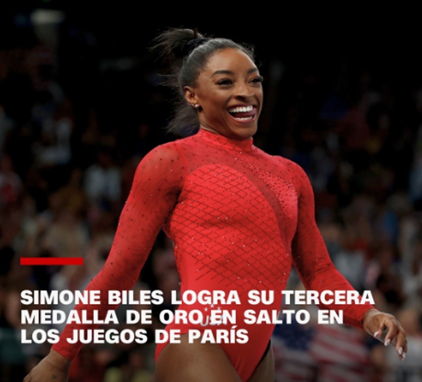 La estadounidense Simone Biles volvió a volar para conquistar su tercer oro en París-2024, y el séptimo de su carrera, tras arrebatarle el título de salto a la brasileña Rebeca Andrade, plata, con una actuación espectacular que deja muy lejos la pesadilla de Tokio.