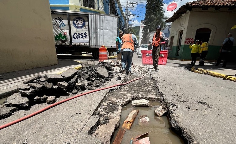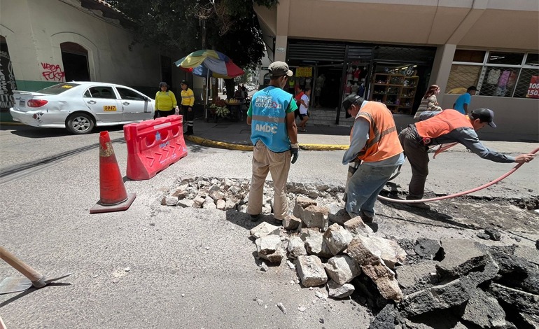 Para hacer el cambio de la alcantarilla y arreglar la falla fue preciso abrir un área de aproximadamente nueve metros y escarbar unos tres metros de profundidad, con lo que se da respuesta oportuna a la ciudadanía que utiliza esa transitada arteria del casco histórico capitalino.