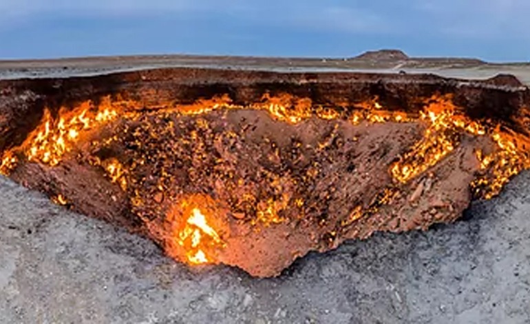 No es para menos. La llamada Puerta del Infierno, de al menos 60 metros de diámetro y unos 20 metros de profundidad, ha estado en llamas durante décadas.