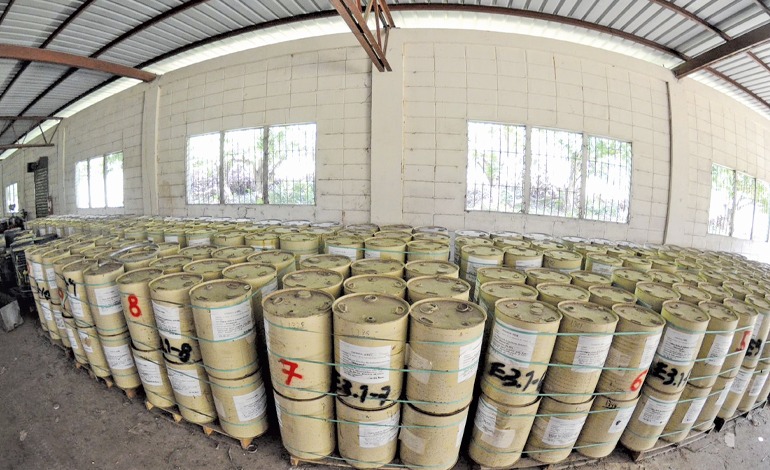 Son más de 200 barriles conteniendo sustancias entre otras como Fenil Acetato de Etilo, cuyo uso ilícito se relaciona a la fabricación clandestina de Anfetaminas, Metanfetaminas, Fenil-2- Propanona.