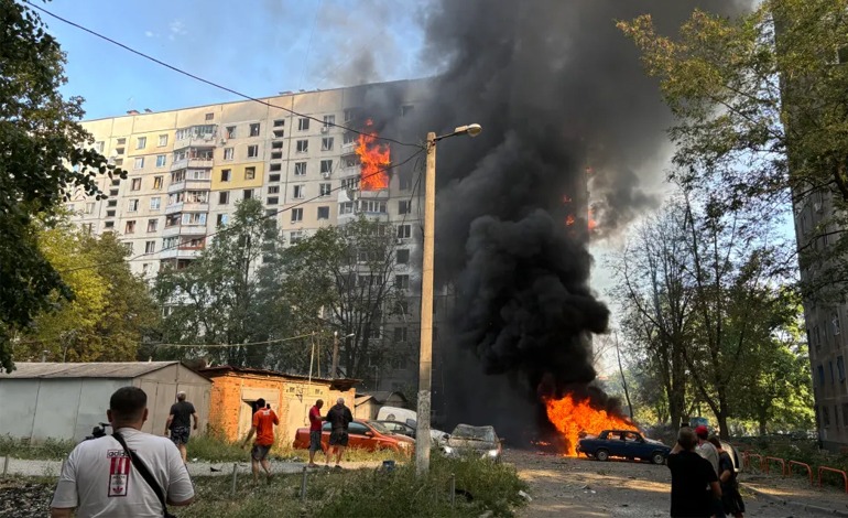 Según Zelenski, dos misiles balísticos golpearon «un centro de enseñanza y un hospital cercano». «Uno de los edificios del instituto de comunicaciones quedó parcialmente destruido. Varias personas estaban entre los escombros», declaró el mandatario en Telegram.