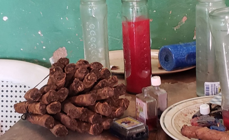 Se encontraron cartas de tarot, puros vudú, una estatua alusiva a la cultura de la “Santa Muerte”, velas de diferentes colores y sales, de acuerdo con el informe.