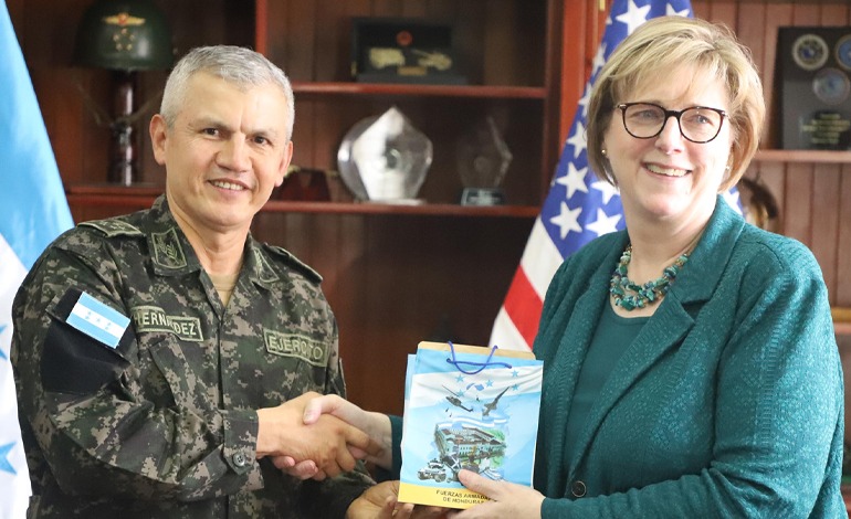 La ministra de Defensa Nacional, Rixi Moncada Godoy, informó acerca de la reunión que sostuvo con la embajadora de los Estados Unidos Laura Dogu, “hemos abordado cinco elementos básicos como ser la forma de trabajar de las oficinas relacionadas con la defensa, mecanismos de trabajo entre la oficina de la defensa de los Estados Unidos aquí en Honduras y de las oficinas de la secretaría de Defensa y Fuerzas Armadas”.