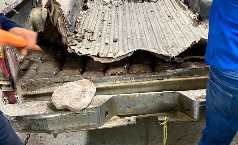 Durante el operativo, se logró interceptar un vehículo al cual se le daba seguimiento por parte de elementos antidrogas y al momento de realizar una minuciosa inspección al mismo, se dio con el compartimiento falso en el vehículo logrando ubicar la droga al interior de una caleta en la paila del vehículo pick up color rojo.
