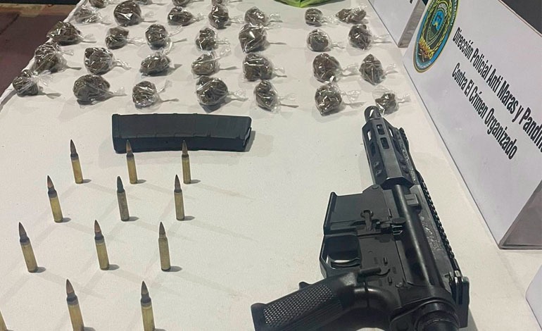 Al momento del registro en la saturación, los agentes decomisaron un arma de fuego de uso prohibido tipo fusil, una bolsa con supuesta marihuana de aproximadamente dos libras, 40 bolsitas transparentes conteniendo en su Interior hierba supuesta marihuana, 12 cartuchos calibre 5.56 mm y una mochila.