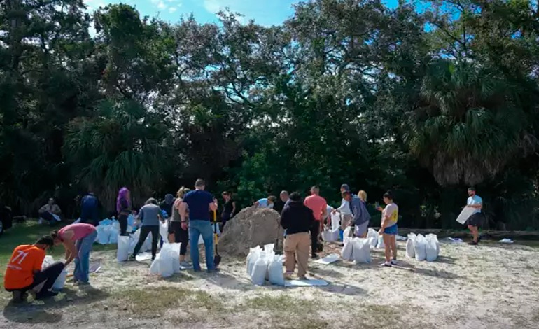 En una escena frenética que se repetía en varios lugares de Florida, decenas de autos hacían fila en un gimnasio en Tampa para recoger sacos de arena con los que proteger sus hogares de las inundaciones que traerá Milton.