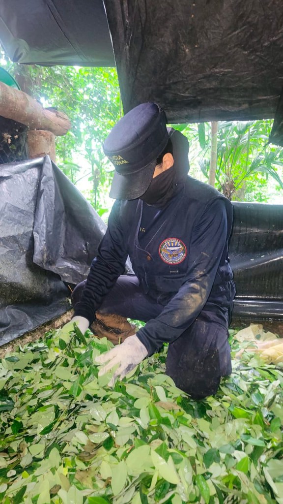 ATLÁNTIDA. – En una operación conjunta liderada por la Dirección Nacional Policial Antidrogas (DNPA), se logró la ubicación y aseguramiento de aproximadamente 45,000 arbustos de supuesta hoja de coca con una altura promedio de 1.5 a 2 metros, en una extensión de cinco manzanas de tierra, a lo interno de una zona montañosa del Parque Nacional Pico Bonito, específicamente en la aldea San Marcos, municipio de La Masica, departamento de Atlántida.