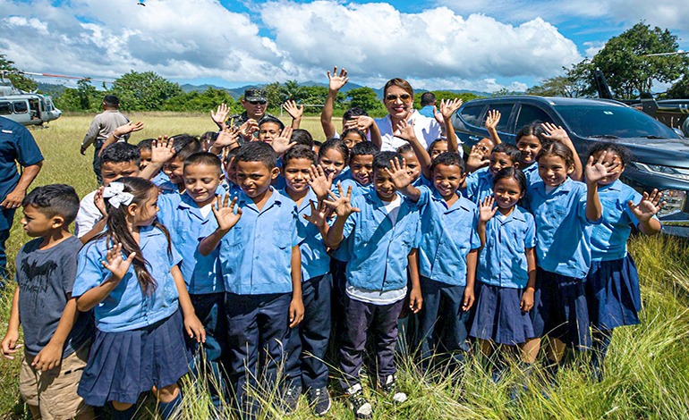 Acompañaron a la titular del Ejecutivo el secretario privado, Héctor Manuel Zelaya; los ministros de Infraestructura y Transporte, Octavio Pineda; Salud, Carla Paredes y Daniel Sponda, de Educación.