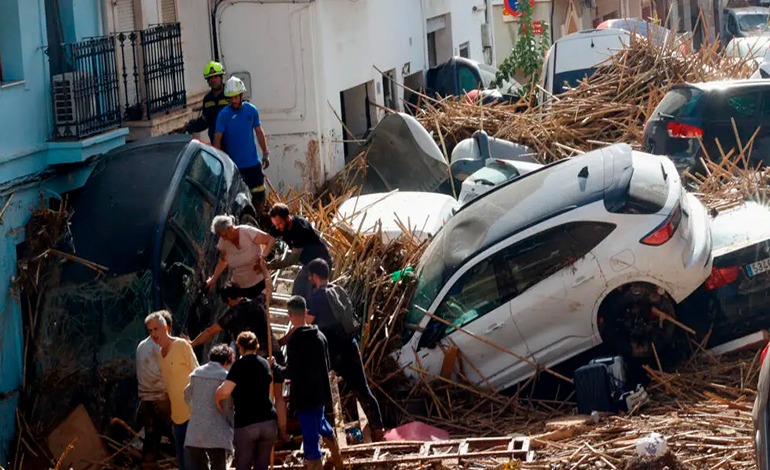 MADRID. – Cientos de latinoamericanos tratan de reponerse al peor temporal de este siglo en España, que ha castigado especialmente Valencia (este) y ha provocado al menos 155 muertos y daños multimillonarios, mientras la policía y los equipos de socorro se abren paso entre el lodo para entregar suministros básicos a los afectados.