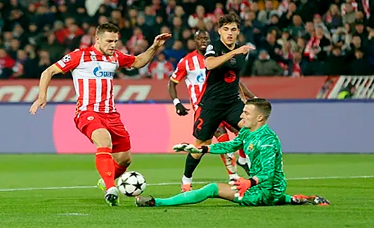 El Barcelona arrolló al Estrella Roja al ganar por 5-2 en Belgrado en la cuarta jornada de la Liga de Campeones, con lo que el equipo azulgrana se sitúa en el grupo de los ocho primeros, concretamente en la sexta posición, que da acceso directo a los octavos.