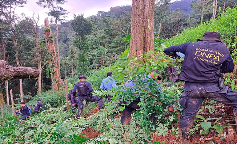 ATLÁNTIDA. – La Dirección Nacional Policial Antidrogas (DNPA), encabezó una operación de alto impacto en la zona montañosa del Parque Nacional Pico Bonito, en la aldea San Marcos de La Masica, Atlántida, en la que se logró la erradicación e incineración de 50,000 arbustos de hoja de coca, sembrados en unas cinco manzanas de tierra.