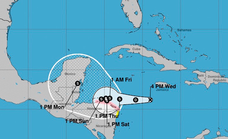 Según la trayectoria pronosticada, el centro del sistema se desplazará a través del Mar Caribe y reducirá su velocidad a medida que se acerca a la costa de Centroamérica.