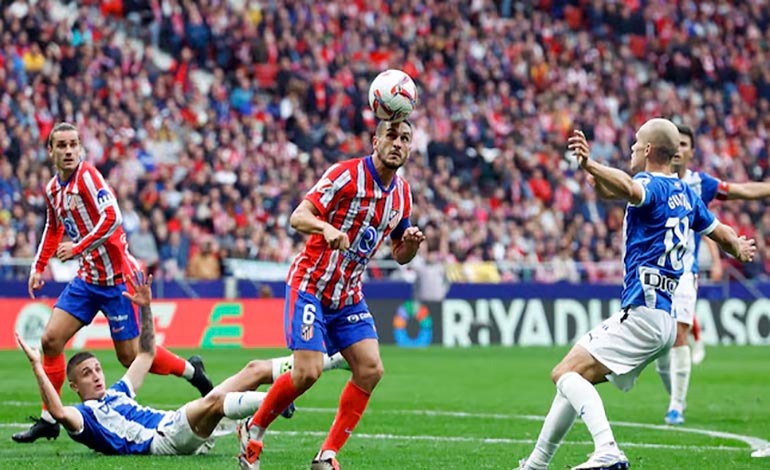 Precisamente, en una incursión del argentino Ángel Correa dentro del área que tampoco llega a terminar Griezmann, el balón acabó estrellándose en el travesaño tras un fuerte remate del brasileño Lino en el minuto 19 de juego.