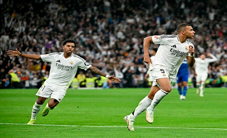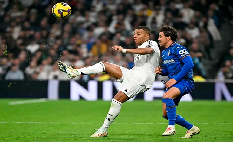 El Real Madrid se acercó a un punto del FC Barcelona al imponerse este domingo en casa al Getafe (2-0) con un gol de Kylian Mbappé en la 15ª fecha de LaLiga.