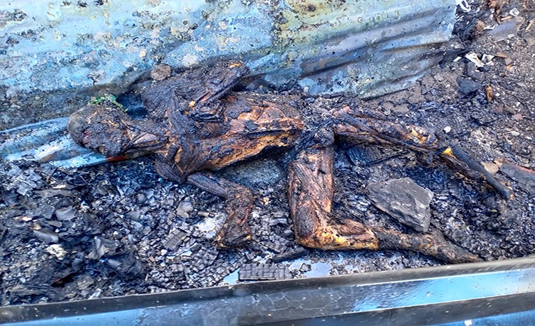 Por lo tanto, los agentes policiales coordinaron el apoyo del cuerpo de Bomberos de Honduras, al momento de apagar las llamas del fuego, producto del incendio ocasionado por el ciudadano, se verifica que hay una persona del sexo masculina calcinada producto del incendio y quien era tío del ahora detenido.
