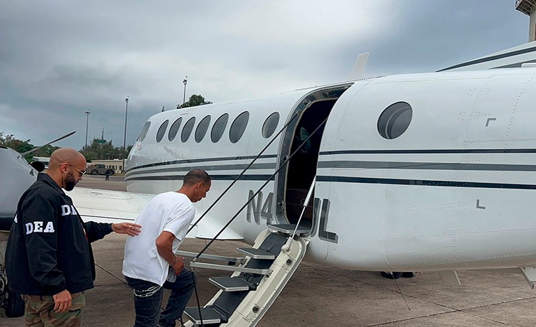 El “Rey del Fentanilo”, Santos Gustavo Erazo Licona, fue extraditado ayer hacia los Estados Unidos por suponerlo responsable del delito de tráfico de droga, durante un fuerte dispositivo de traslado, custodia y entrega por parte de agentes de la Policía Nacional de Honduras, a través de la Dirección Nacional de Fuerzas Especiales (DNFE).