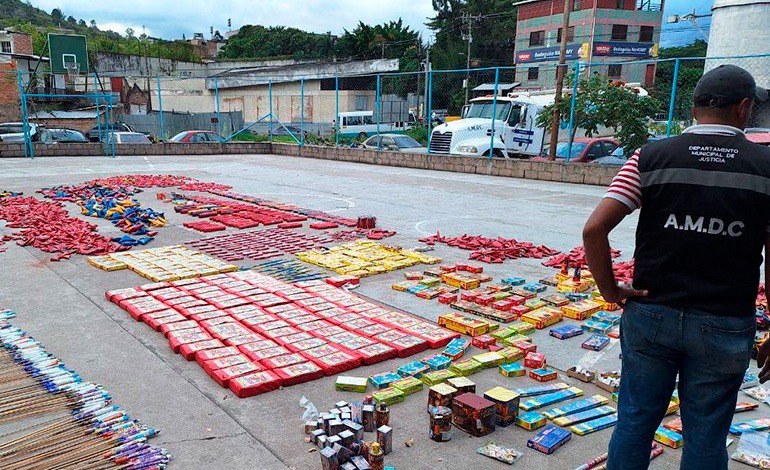 La Alcaldía Municipal del Distrito Central (AMDC) detalló que se incautaron distintos artefactos elaborados con pólvora, los que ya estaban destinados para su comercialización, pese a la ordenanza que prohíbe la tenencia, uso y comercialización de este tipo de productos en la capital.