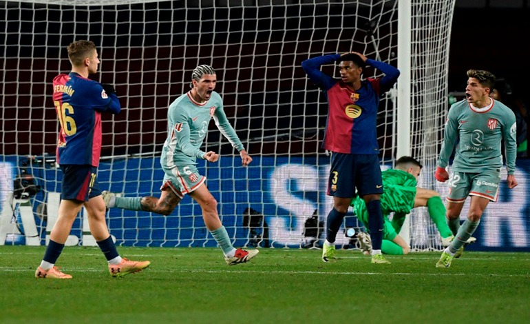 Mientras el cuadro catalán insistía para llevarse la victoria, el Atlético acabó por adjudicársela tras una espectacular contra. De Paul abrió el esférico para su compatriota Nahuel Molina en el carril diestro, quien se sacó de la manga un pase magistral, a ras de suelo, para encontrar a un Sorloth, que lanzó un misil letal con su zurda (90+6).