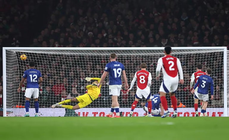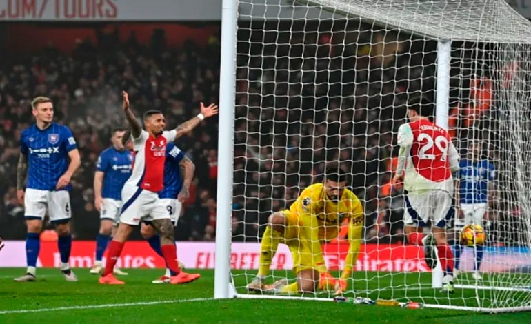 La solución de Arteta fue situar en el costado derecho al delantero brasileño Gabriel Martinelli. En punta jugó el brasileño Gabriel Jesus después de marcar cinco goles entre los dos partidos anteriores del Arsenal. Ante el Ipswich volvió a ver puerta con un remate casi sin ángulo, pero su acción fue anulada por fuera de juego.
