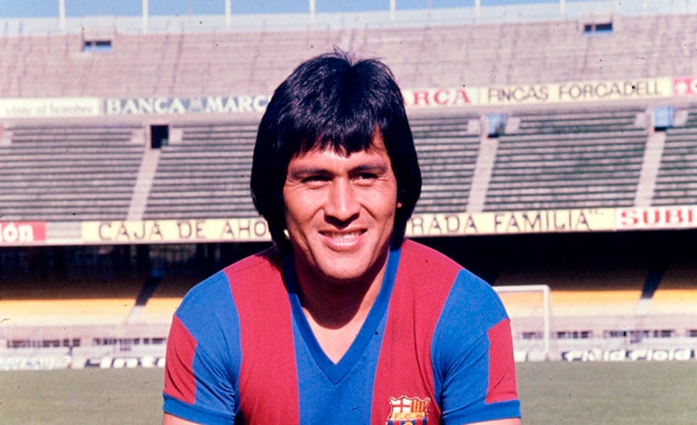 Hugo Sotil aterrizó en el campeonato español procedente del Municipal de Lima. En su primera temporada como blaugrana, levantó el título de campeón de España «haciendo auténticas maravillas junto a figuras como Rexach, Asensi, Cruyff y Marcial», recuerda el club.