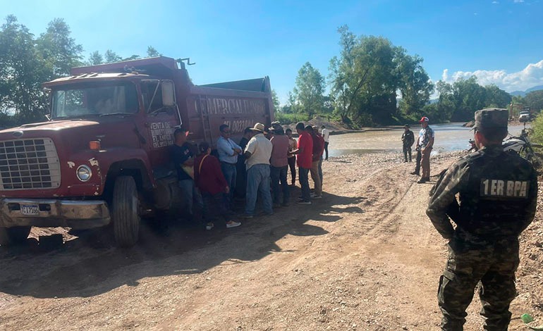 Como parte de las operaciones de seguridad orientadas al combate de delitos ambientales, en el río Guayape, sector de la aldea “La Concepción”, de Juticalpa, departamento de Olancho, las Fuerzas Armadas decomisó cinco volquetas y una excavadora que eran utilizadas para actividades no autorizadas.