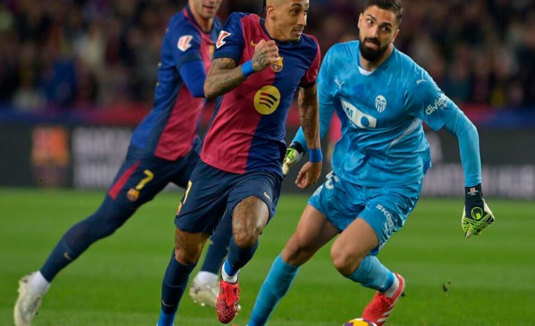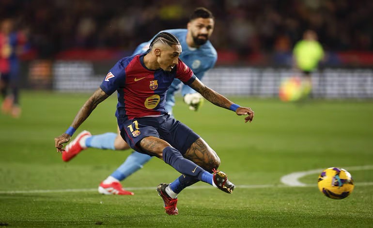 El neerlandés Frenkie De Jong (3), Ferran Torres (8), el brasileño Raphinha (14) y Fermín López, con un doblete (24, 49), dejaron el partido visto para sentencia antes del descanso. El arquero georgiano Giorgi Mamardashvili veía impotente cómo una vez tras otras las acometidas locales sorprendían a la espalda de la zaga ‘che’, incapaz de oponer la menor resistencia.