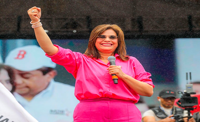 La candidata presidencial mencionó los tres proyectos que están pendientes en el Congreso Nacional (Presupuesto 2025, Ley de Justicia Tributaria y los contratos de energía que reducen los precios por kilovatio) y atizó al bipartidismo por oponerse a la aprobación de los mismos.