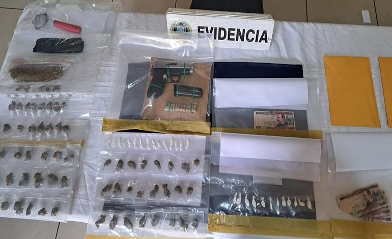 Durante la operación, se incautaron varios objetos y sustancias relacionadas con actividades ilícitas, incluyendo un arma de fuego tipo pistola con un cargador metálico que contenía 12 proyectiles calibre 40mm, dinero en efectivo, una bolsa con presunta marihuana, 101 bolsitas con la misma droga, 15 envoltorios con supuesta cocaína y varios teléfonos celulares.