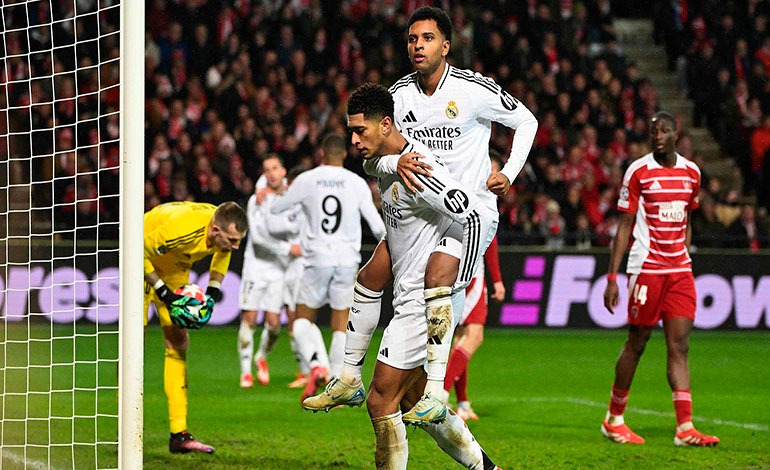 Después del susto, Jude Bellingham (56) heló las esperanzas de remontada del Brest al firmar el segundo del Real Madrid, empujando un pase de la muerte de Lucas Vázquez.